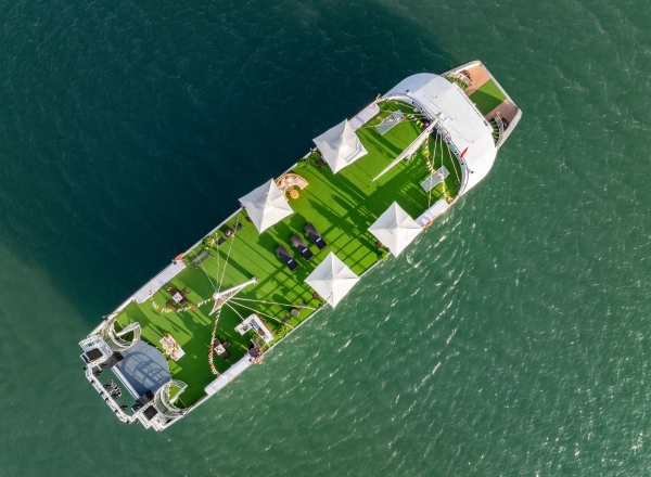 Relaxing on sundeck deserves you an endless view of Halong Bay, it is the best location onboard to have a panorama photo of the bay. Best place for watching the sunset over, it is best to be on the sundeck, a higher place to capture a marvelous overview of nature. The Halong Catamaran allocate entirely the second floor for a spacious sundeck that you can enjoy such breathtaking view and shoot the best photos of Halong Bay.